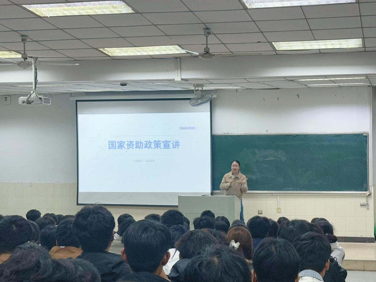 为助力学子无忧求学,电竞投注 于10月22日在秀山校区阶教201举办“国家资助政策宣讲会”,由新生辅导员任静主讲,全体2025级新生参加。
