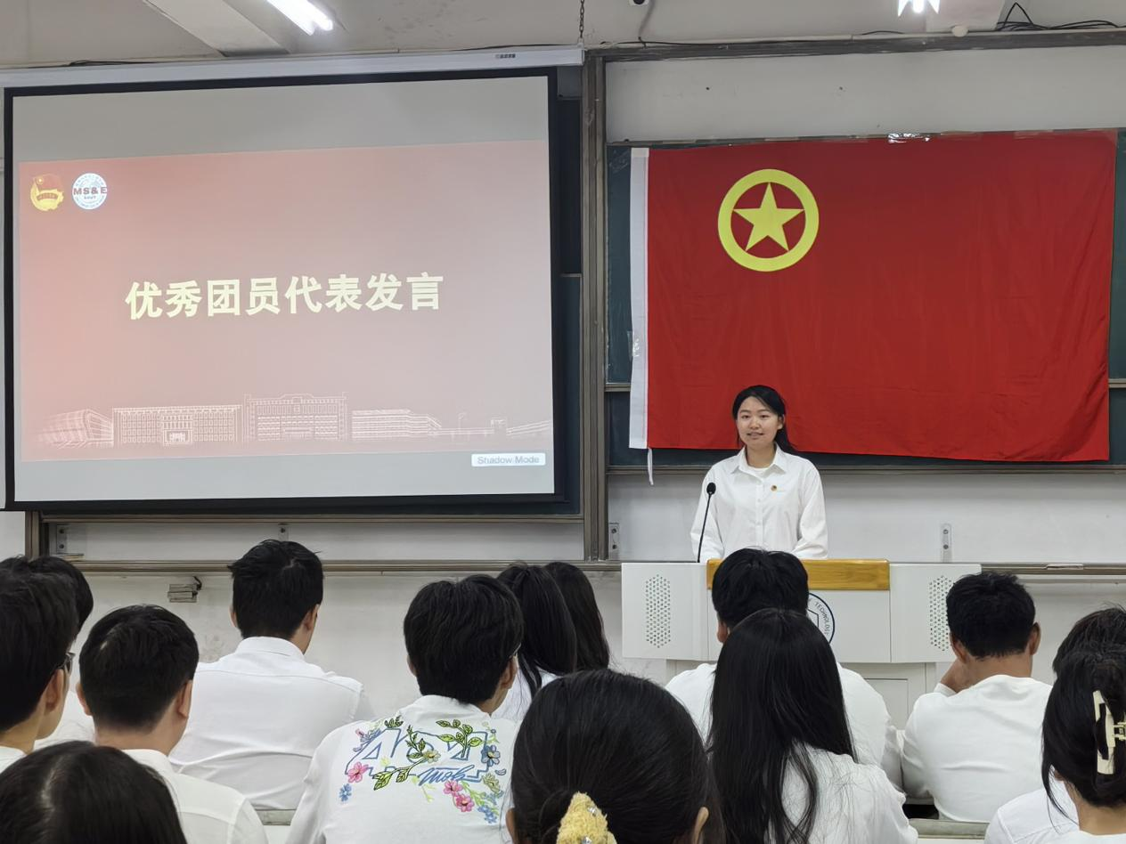 仪式在雄壮的国歌声中正式开始。李思雨宣读新团员名单,颁发团徽、团员证与团章。领誓人刘道瑞带领全体新团员庄严宣誓,誓言铿锵,展现了他们坚定的理想信念和永远跟党走的决心。新团员代表李心琪表示,这将是她人生的新起点,未来将不断提高思想觉悟,勤奋学习,积极实践,争做优秀共青团员。老团员代表傅中晨结合自身经历,鼓励新团员牢记使命、勇于担当,在学习与生活中发挥模范作用。仪式在全体齐唱《光荣啊,中国共青团》的激昂歌声中圆满结束。