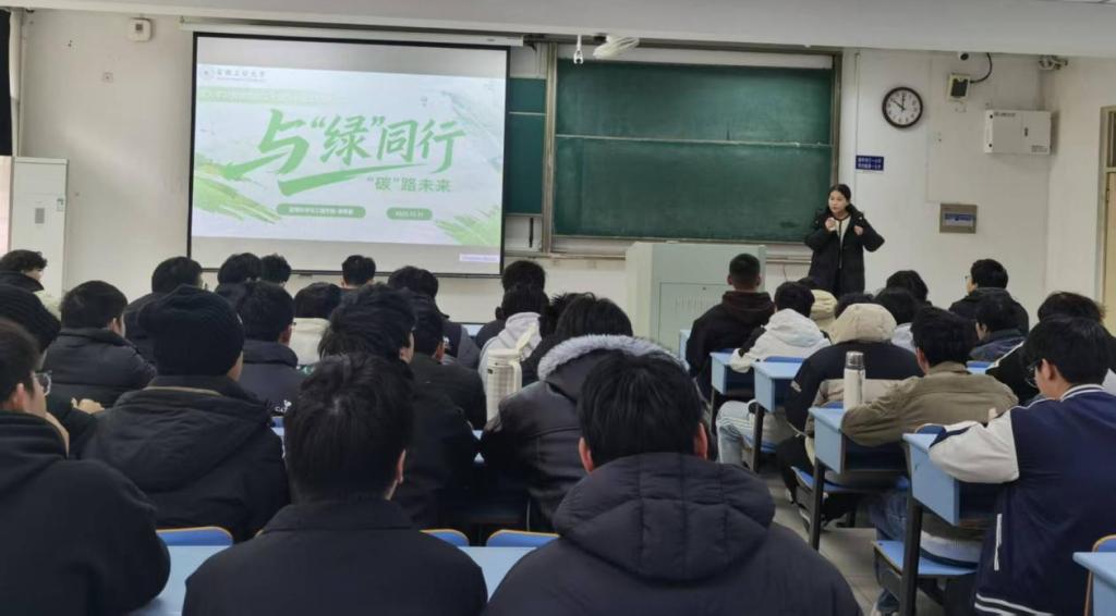 本次宣讲立足“理论阐释—价值引领—实践赋能”思路,围绕“双碳目标锚定国家方略”“全球治理彰显中国担当”“绿色先锋激发青年动能”“美丽家园聚力校园共建”四个维度展开。李军慧紧扣党的二十届四中全会“美丽中国建设”部署及“十五五”绿色转型要求,解读“双碳”目标战略内涵;通过我国能源转型、生态碳汇等领域成就,展现中国气候治理担当;以汪集暘院士、治沙青年仲麟等事迹为榜样,激发学子使命意识,引导其将个人理想融入绿色发展大局。